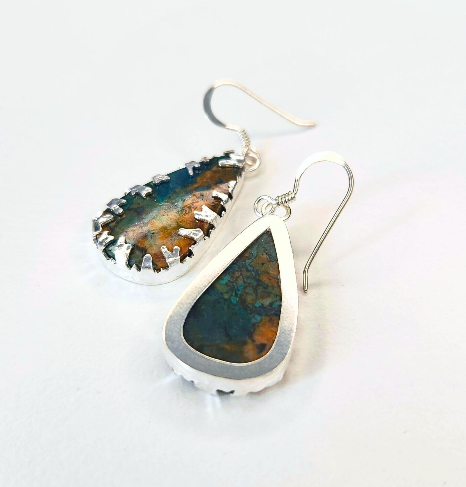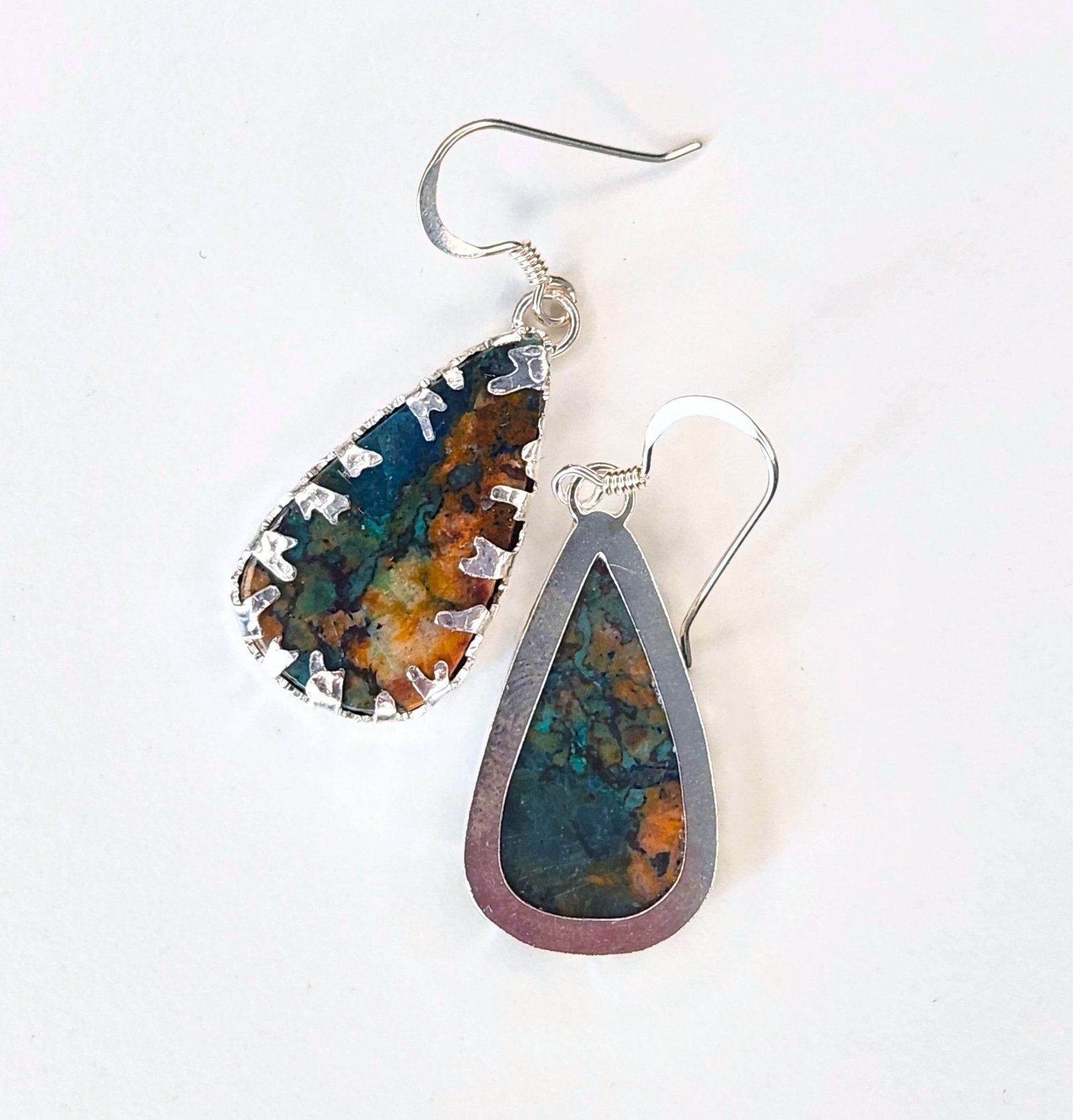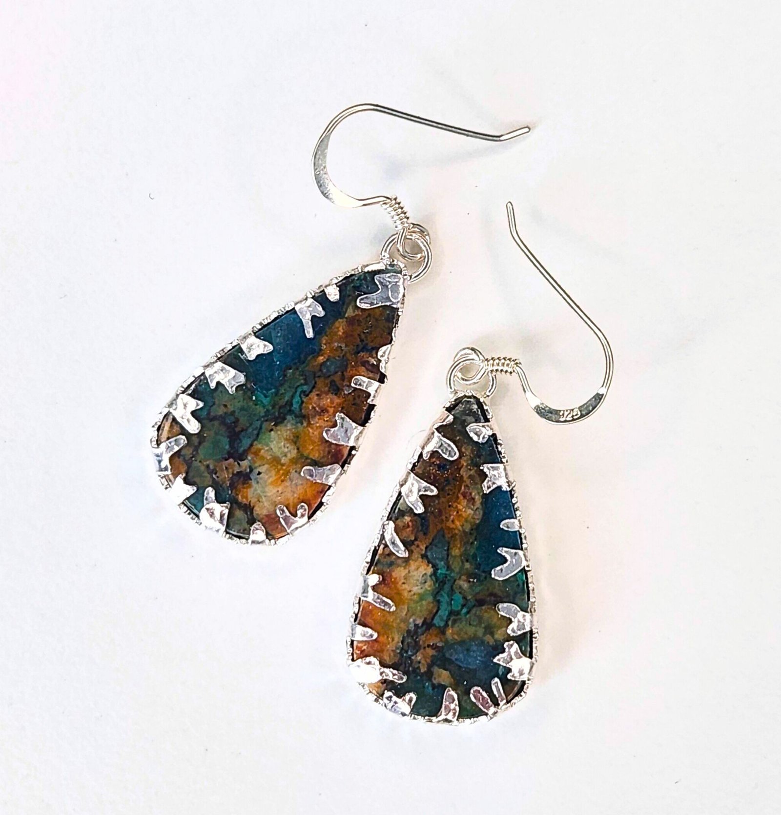 Boucles d’oreilles pendantes en argent 925/1000 et shattuckite.